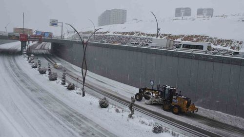 Şahinbey Belediyesi, Gaziantep’teki yoğun kar yağışında ana arterler, kaldırımlar ve kritik güzergâhlarda 24 saat kar küreme ve tuzlama çalışması yürütüyor.