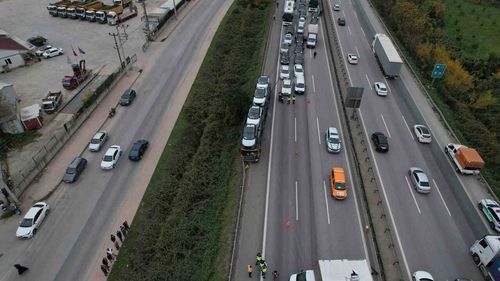 Sakarya'da Anadolu Otoyolu'nda nakliyat kamyoneti devrildi; Ankara yönünde uzun araç kuyruğu oluştu