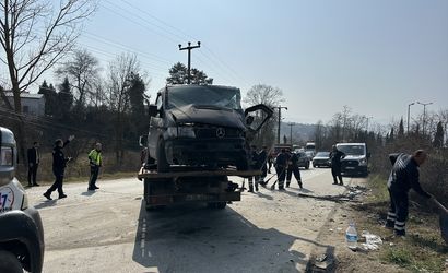 Sakarya'nın Sapanca ilçesinde, bir otomobil ile hafif ticari aracın çarpışması sonucu 10 kişi yaralandı. Olay, Uzunkum Mahallesi Sakarya Caddesi'nde meydana geldi. A.K. idaresindeki 81 BK 499 plakalı otomobil, B.Ö. tarafından kullanılan 41 TN 832 plakalı hafif ticari araç ile çarpıştı.