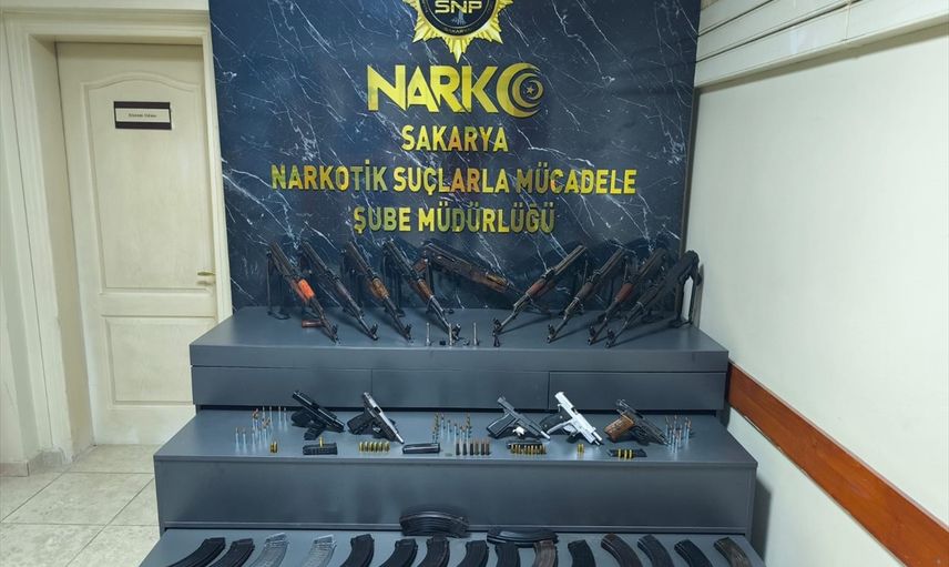 Sakarya'da polis memurunun aracında 9 kaleşnikof piyade tüfeği, 5 ruhsatsız tabanca ele geçirildi, zanlı gözaltına alındı.