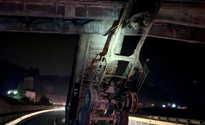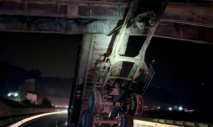 Kazanın ardından damper, çekiciden koparak üst geçitte asılı duruma geldi. Olayda yaralanan kimse olmadı. Sürücü, durumu 112 Acil Çağrı Merkezi'ne bildirirken, olay yerine itfaiye, polis ve kara yolları ekipleri intikal etti.