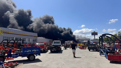 Sakarya'nın Adapazarı ilçesinde bir traktör firmasına ait yedek parça deposunda yangın çıktı, müdahale devam ediyor.