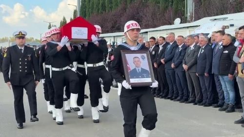 Gürcistan'da düşen C-130 kazasında şehit olan Astsubay Akın Karakuş'un naaşı Kocaeli Cengiz Topel Havalimanı'nda düzenlenen törenle karşılanıp Sakarya'ya uğurlandı.