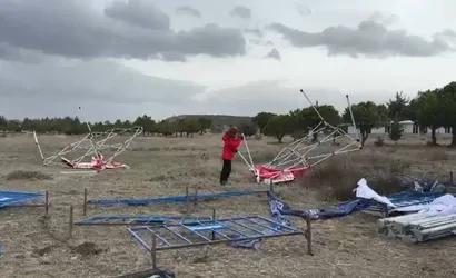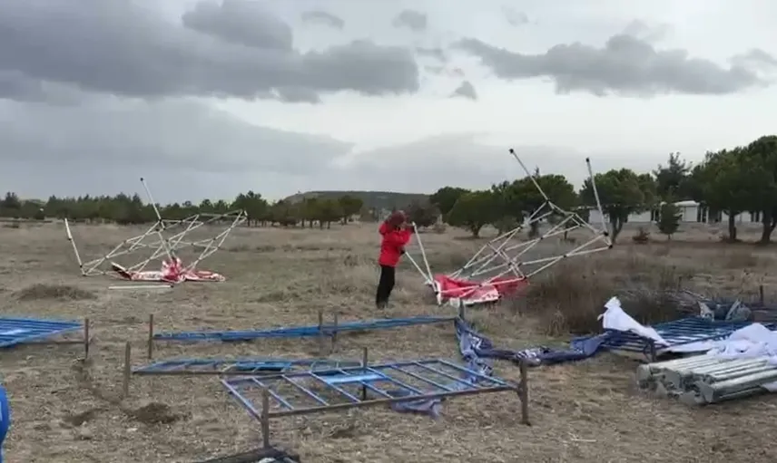 BURDUR’UN YEŞİLOVA İLÇESİNDE BULUNAN SALDA GÖLÜ’NDE YAPILAN DUATLONU TÜRKİYE KUPASI’NA ŞİDDETLİ RÜZGAR SAHNE OLDU. RÜZGAR NEDENİYLE ÇADIRLAR VE DEMİR BARİYERLE UÇARKEN SPORCULAR ZOR ANLAR YAŞADI.