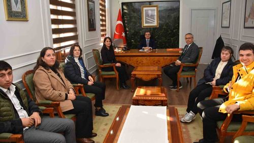 Kaymakam Ali Güldoğan, Özel Eğitim Uygulama Okulu öğrencilerini makamında kabul ederek Yaşam Becerileri Atölyesi çalışmalarını ve öğrencilerin gelişimini değerlendirdi.