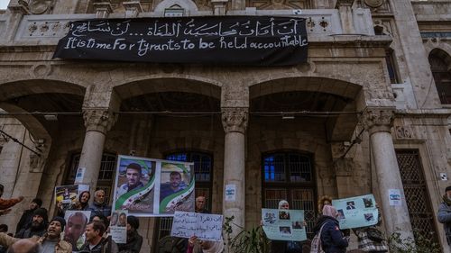 Baas rejimi tarafından alıkonulan yakınlarının akıbetini öğrenmek isteyen aileler, Şam'da Hicaz Tren Garı'nda bir araya gelerek protesto gerçekleştirdi.