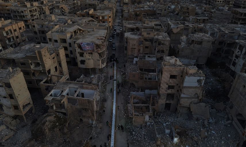 İnsan Hak ve Hürriyetleri (İHH) İnsani Yardım Vakfı, Suriye'nin başkenti Şam'daki Cobar Mahallesi'nde, devrik Baas rejimi ve destekçilerinin saldırılarında enkaz haline gelen evlerin arasında toplu iftar programı düzenledi. Devrik Baas rejimi tarafından yerle bir edilen Cobar Mahallesi'nde yaklaşık 500 kişi, İHH'nin toplu iftar etkinliğinde bir araya geldi.