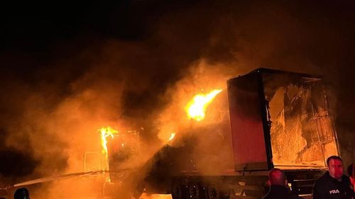 Hatay'ın Samandağ ilçesi Kurtderesi Mahallesi'nde gece saatlerinde seyir halindeki tır alevlere teslim oldu; itfaiye müdahalesiyle söndürüldü, can kaybı yok.