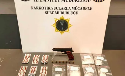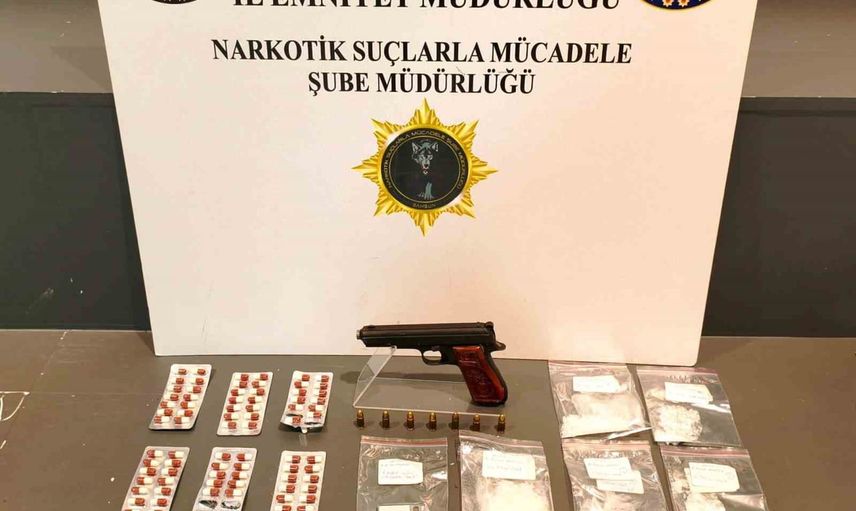 İkamette yapılan aramada ele geçirilenler arasında 40 gram metamfetamin, 121 adet sentetik ecza, 1 adet hassas terazi, 2 adet uyuşturucu kullanma aparatı, 1 adet ruhsatsız tabanca ve 7 adet tabanca fişeği yer aldı.