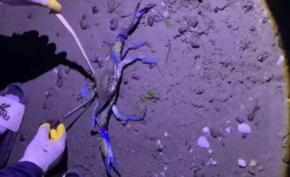 SAMSUN’UN ATAKUM İLÇESİNDE BALIKÇILARIN AĞINA NADİR GÖRÜLEN MAVİ YENGEÇ TAKILDI. BALIKÇILAR TARAFINDAN FARK EDİLEN YENGEÇ, KISA SÜRE İNCELENDİKTEN SONRA YENİDEN DENİZE SALINDI.