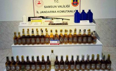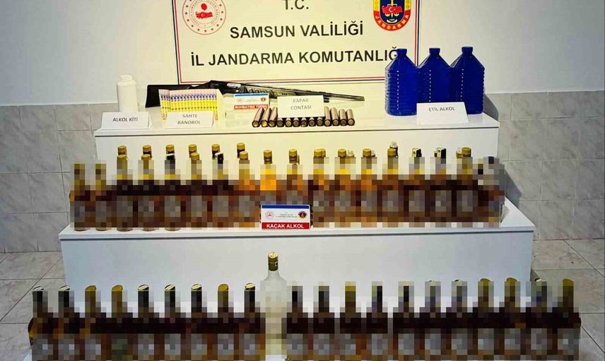 Samsun'da yılbaşı öncesi sahte içki üretimine yönelik düzenlenen operasyonda, İl Jandarma Komutanlığı ekipleri Bafra ilçesinde bir eve baskın yaparak kaçak imalatı ortaya çıkardı.