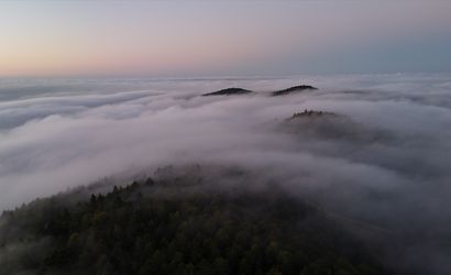 Samsun'un Alaçam ilçesine bağlı Kızlan Mahalleside, 1000 rakımlı bölgede yoğun sis tabakası oluştu ve bölgedeki dron görüntüleriyle kayıt altına alındı. Dron adı geçen alandaki tepelerin ve ormanların üzerini örten sisin yayılımını havadan belgeledi.
