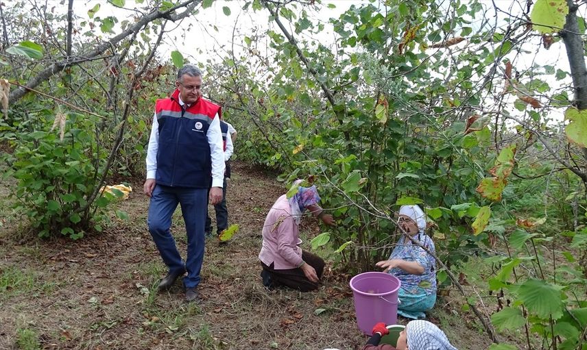 Karadeniz Bölgesi'nin en önemli tarımsal üretimi olan fındıkta hasat devam ediyor. Samsun Tarım ve Orman Müdürü Kemal Yılmaz (solda), Terme ilçesinde fındık bahçelerinde inceleme yaptı.