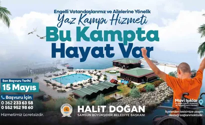 Samsun Büyükşehir Belediyesince engelli bireyler ve ailelerine yönelik planlanan ücretsiz yaz kampı "Bu Kampta Hayat Var" projesi için başvurular başladı. Kamp programı ile binlerce engelli birey ve ailesi, Türkiye’de ilk olma özelliği taşıyan Mavi Işıklar Eğitim, Dinlenme ve Rehabilitasyon Merkezinde tatil keyfi yaşayacak.
