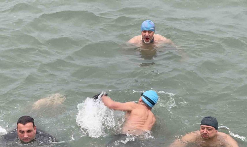 Samsun'un Canik ilçesi Doğupark mevkisinde, kendilerini "Doğupark Tayfası" olarak adlandıran yaklaşık 10 arkadaş, yeni yılın ilk günü sabah saatlerinde bir araya gelerek Karadeniz'in soğuk sularına girdi.