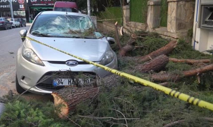Samsun'da fırtına park halindeki otomobile zarar verdi