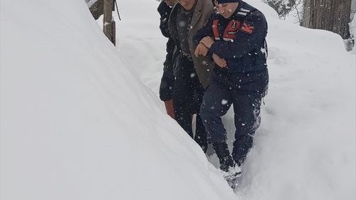 Samsun'un Terme ilçesinde jandarma ekipleri, kar yağışı nedeniyle yolu kapanan hastayı evinden alarak hastaneye ulaştırdı.