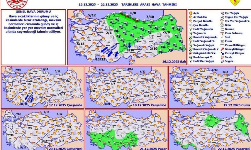 MGM 10. Bölge Müdürlüğü, Samsun için hava sıcaklıklarının ayrıca 3-5 derece daha düşmesini bekliyor. Kurum, yarın ve Perşembe günü gündüz sıcaklıklarının 4 dereceye kadar düşebileceğini belirtti ve bugün için kuvvetli yağış uyarısı yaptı. MGM tarafından yapılan uyarıda şu ifadelere yer verildi: "Sabah saatlerinden sonra kıyı kesimlerde yer yer kuvvetli yağışlar beklenmektedir. Yağışların bölgenin yükseklerinde yer yer kuvvetli kar şeklinde olması beklendiğinden yaşanabilecek buzlanma, don, kuvvetli rüzgarla tipi ile ulaşımda aksamalar gibi olumsuzluklara karşı dikkatli ve tedbirli olunmalıdır."