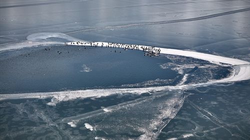 Samsun'un Ladik ilçesindeki Ladik Gölü, kar yağışı sonrası donarak etkileyici bir manzara oluşturdu.