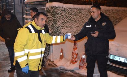 Ayrıca, yolda mahsur kalanlar ile çalışma yapan polis, Karayolları, itfaiye ve sağlık ekiplerine de sıcak çorba ikramında bulunarak, bu zor süreçte bir nebze olsun destek sağladı.