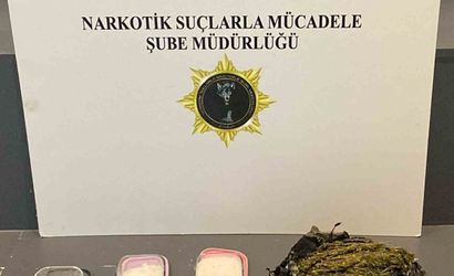 Ekiplerin belirlenen ikamette yaptığı aramada 445 gram metamfetamin, 200 gram esrar ve 1 adet hassas terazi bulundu.