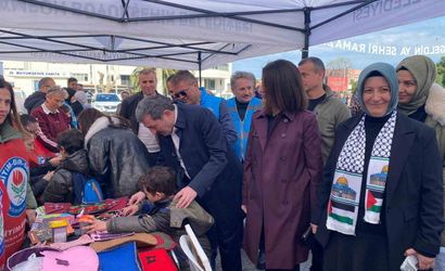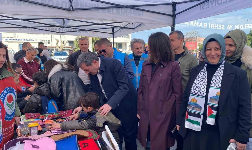 Protokol üyeleri stantları inceleyip gönüllülerle sohbet ederek, Gazze’deki mağduriyetin giderilmesinde toplumsal dayanışmanın önemine dikkat çekti.