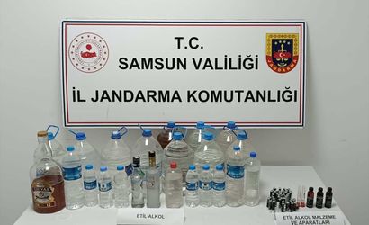 Samsun'da sahte içki ürettiği iddia edilen şüpheli gözaltına alındı. Operasyonda 55 litre etil alkol ve 56 anason aroma kiti ele geçirildi.