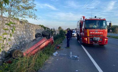 Edinilen bilgiye göre, Sinop istikametine seyir eden Y.K. yönetimindeki otomobil, sürücünün direksiyon hakimiyetini kaybetmesi sonucu takla atarak istinat duvarına çarptı.
