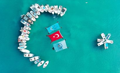 Katılımcılar teknelerini Türk bayrakları ile süsleyerek ay ve yıldız şeklinde konumlandırdı. Koreografide yer alan dalgıçlar, denizin ortasında Türk bayrağı açtı; bu görüntü sahilden toplananların alkışlarıyla karşılandı.