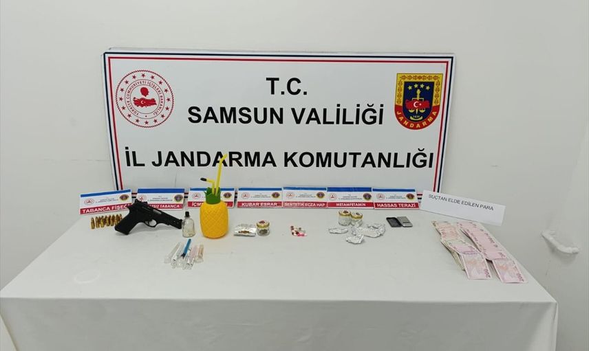 Samsun'da uyuşturucu operasyonunda 3 şüpheli gözaltına alındı. Adreslerde yapılan aramada 35 gram sentetik uyuşturucu, 8 sentetik ecza hapı, 8 uyuşturucu kullanma aparatı, hassas terazi, uyuşturucu madde ticaretinden elde edildiği değerlendirilen 6 bin 515 lira, ruhsatsız tabanca ve 23 tabanca fişeği ele geçirildi.