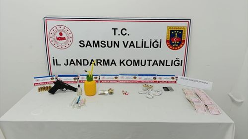 Samsun'da düzenlenen uyuşturucu operasyonunda 3 kişi gözaltına alındı, çok sayıda uyuşturucu madde ve silah ele geçirildi.
