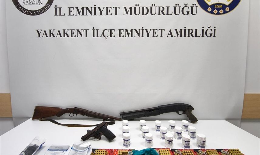 Operasyonun devamında, Alaçam İlçe Emniyet Müdürlüğü ekiplerinin desteğiyle araçtaki 2 şüphelinin ikametlerinde arama yapıldı. Yapılan aramalarda ruhsatsız tabanca, 240 fişek, 2 ruhsatsız tüfek, 10,6 gram kenevir tohumu ve 3 sentetik ecza hapı bulundu.