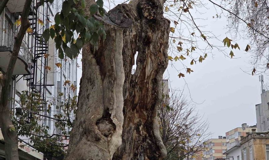 Dışarıdan bakıldığında içi tamamen boş görünen çınar ağacı, sadece dış kabuğu üzerinde ayakta duruyor. Ağacın üst dallarındaki yeşillik, köklü bitkinin hayatta kalma çabasını yansıtıyor ve bölgedeki vatandaşlara gölgelik sağlıyor.