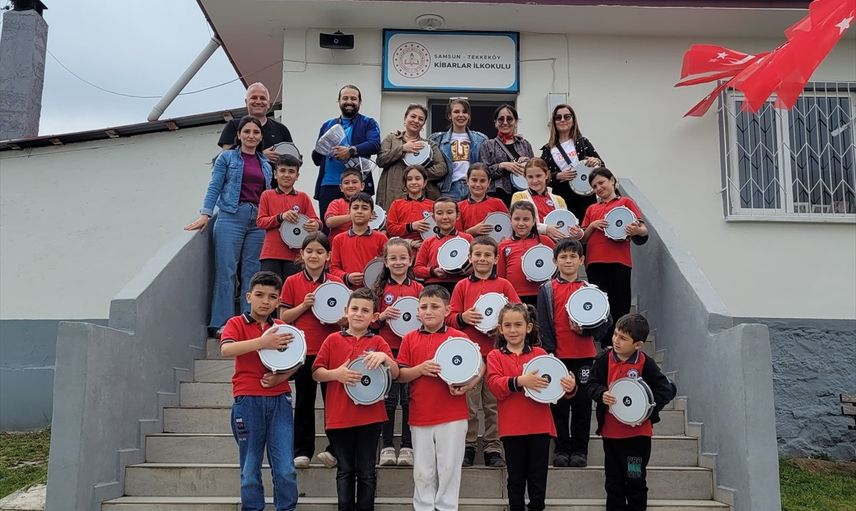 Samsun'un Tekkeköy ilçesindeki köy okulunda okuyan öğrencilerin darbuka hayalini gönüllüler gerçekleştirdi.