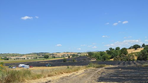 Samsun'un Havza ilçesinde çıkan yangında 100 dekar tarım arazisi etkilenirken, 40 dekar buğday ekili alan zarar gördü.