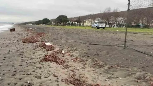 Samsun'un Atakum ilçesi İncesu mevkisinde sahile vuran sandık, üzerinde Rusça olduğu belirtilen yazılar nedeniyle polis tarafından tedbiren alınıp incelenmek üzere götürüldü.