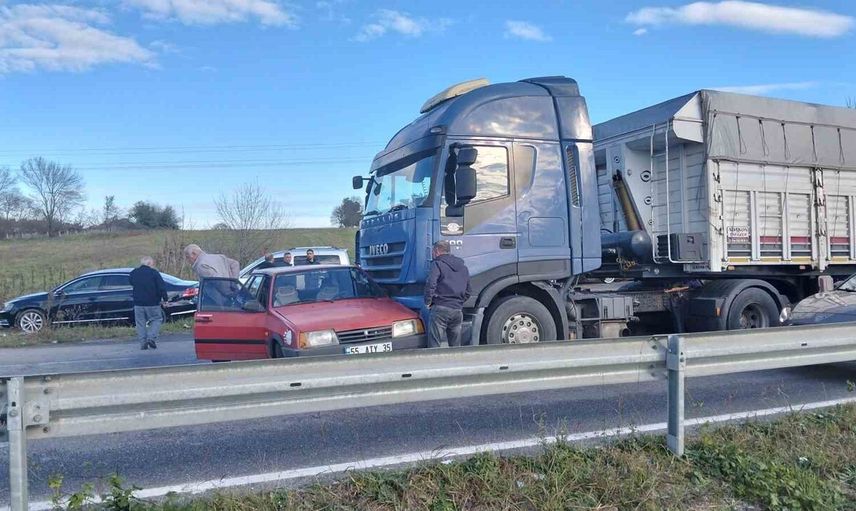 Edinilen bilgiye göre, Sinop istikametine seyir halindeki 55 NE 898 plakalı tır, aynı yönde ilerleyen 55 ATY 35 plakalı otomobile arkadan çarptı.