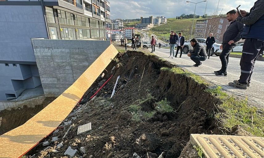 Samsun'un Atakum ilçesinde bir inşaat alanının yanındaki yolda kısmen çökme meydana geldi.