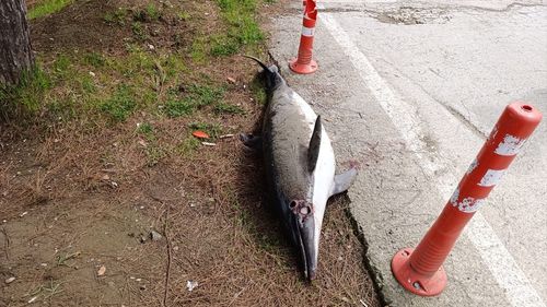 Atakum'da sahile vuran ölü yunus, belediye ekiplerince katı atık alanına götürüldü.