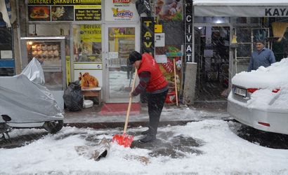Belediye ekipleri, cadde ve sokaklarda kar küreme ve tuzlama çalışmalarına devam etmektedir. İş yerlerini açan esnaf ise dükkanlarının önlerinde kar temizliği yaparak, vatandaşların hareketliliğini artırmaya çalışıyor.