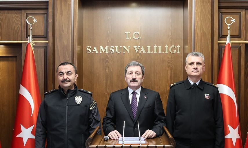 Samsun Valisi Orhan Tavlı (ortada), ocak ayının karşılaştırmalı asayiş ve güvenlik verilerini paylaştı.