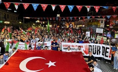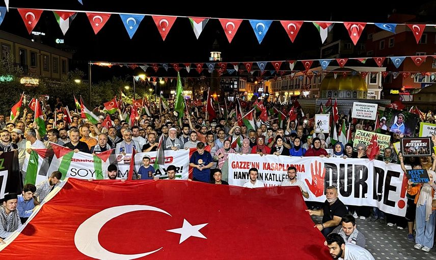 Sinop'ta, İskele Cami önünden başlayan yürüyüşte, Türk ve Filistin bayrakları taşıyan vatandaşlar Uğur Mumcu Meydanı'na doğru ilerledi. Filistin’e destek platformu adına konuşan Ramazan Çelik, "Bugün burada Şehid İsmail Heniyye’nin vasiyetini yerine getirmek, siyonizmi lanetlemek ve Gazze halkının sesi olmak için toplanmış bulunuyoruz," dedi.