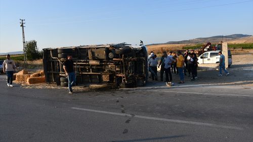 Samsun Vezirköprü'de traktör ile saman yüklü kamyonetin çarpışması: 1'i ağır 4 yaralı