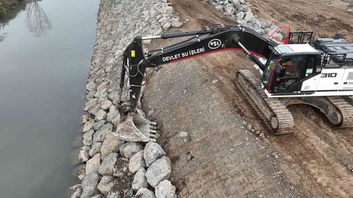 Samsun Tekkeköy Yeni OSB'de DSİ yürütücülüğünde yürütülen ıslah ve drenaj çalışmaları; kanal, istifli taş tahkimatı ve taş temini ile ilerliyor, proje gerçekleşme oranı %25.
