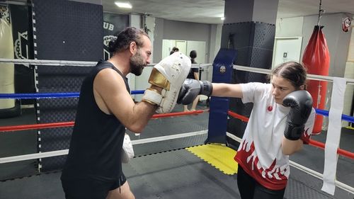 18 yaşındaki Aleyna Korkmaz, 16 yaşında başladığı muaythai ve kick boksta kısa sürede çok sayıda Türkiye şampiyonluğu ve uluslararası dereceler kazandı.