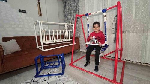 Samsunlu tesisatçı Furkan Karadağ su borularından beşik ve taşınabilir salıncak üretti