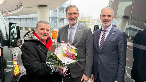 Samsunspor, UEFA Konferans Ligi 6. haftasında Mainz ile oynayacağı maç için Almanya'ya geldi; Frankfurt Havalimanı'nda yetkililer ve iş insanları çiçekle karşıladı.