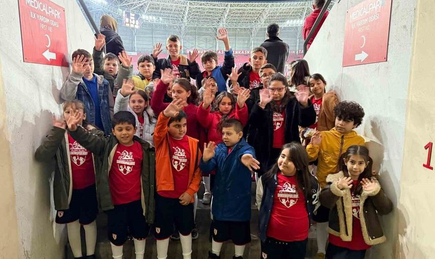 PROJE ÇERÇEVESİNDE HAZIRLADIKLARI TİŞÖRTLERİ “SEVDAMIZ SAMSUNSPOR” DİYEREK TASARLAYAN ÖĞRENCİLER, SAMSUNSPOR–ALANYASPOR MAÇININ AÇILIŞ SEREMONİSİNDE KIRMIZI-BEYAZLI FUTBOLCULARLA BİRLİKTE SAHAYA ÇIKTI.