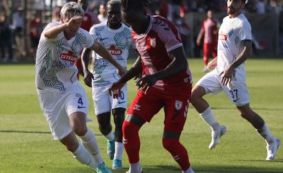 Trendyol Süper Lig ekiplerinden Samsunspor ile Çaykur Rizespor, Samsunspor Futbol Akademi Tesisleri’nde hazırlık maçında karşı karşıya geldi. Kırmızı-beyazlı futbolcu Dimata (sağda) bir pozisyonda rakibi ile mücadele etti.