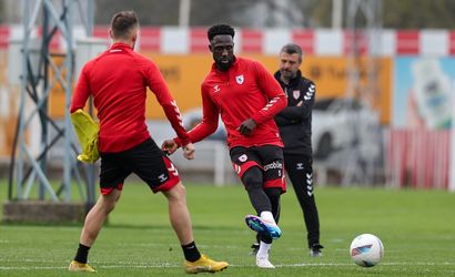 Reeder Samsunspor, Trendyol Süper Lig'in 29. haftasında sahasında oynayacağı Kasımpaşa karşılaşmasının hazırlıklarını tamamladı. Antrenmanda Kingsley Schindler (sağda) de yer aldı.